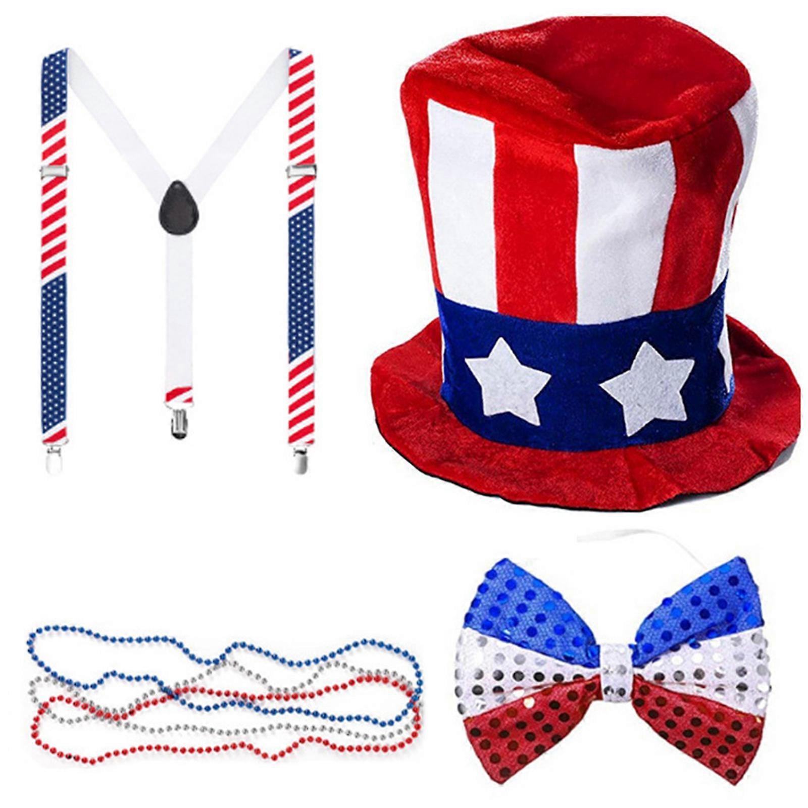 Novelty Men Uncle Patriotic Costume Uncle Patriotic Dress up Outfits Patriotic Accessories Includes Hat Bowtie Men Brace Multicolor