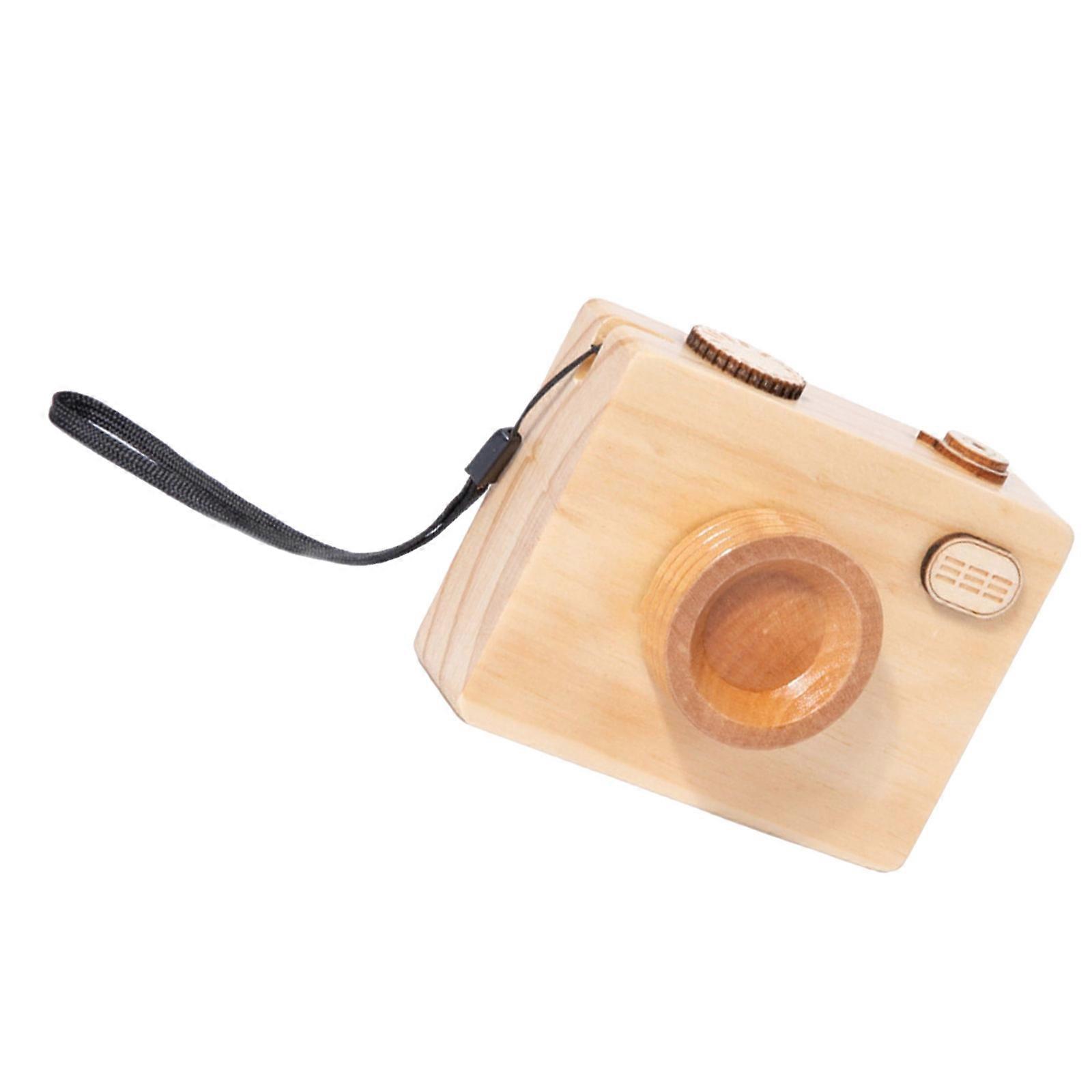 Wind Up Wood Music Box with Classical Camera Designs Retro Musical Figurine Handmade Ornament for Home Decors and Gift Wood color