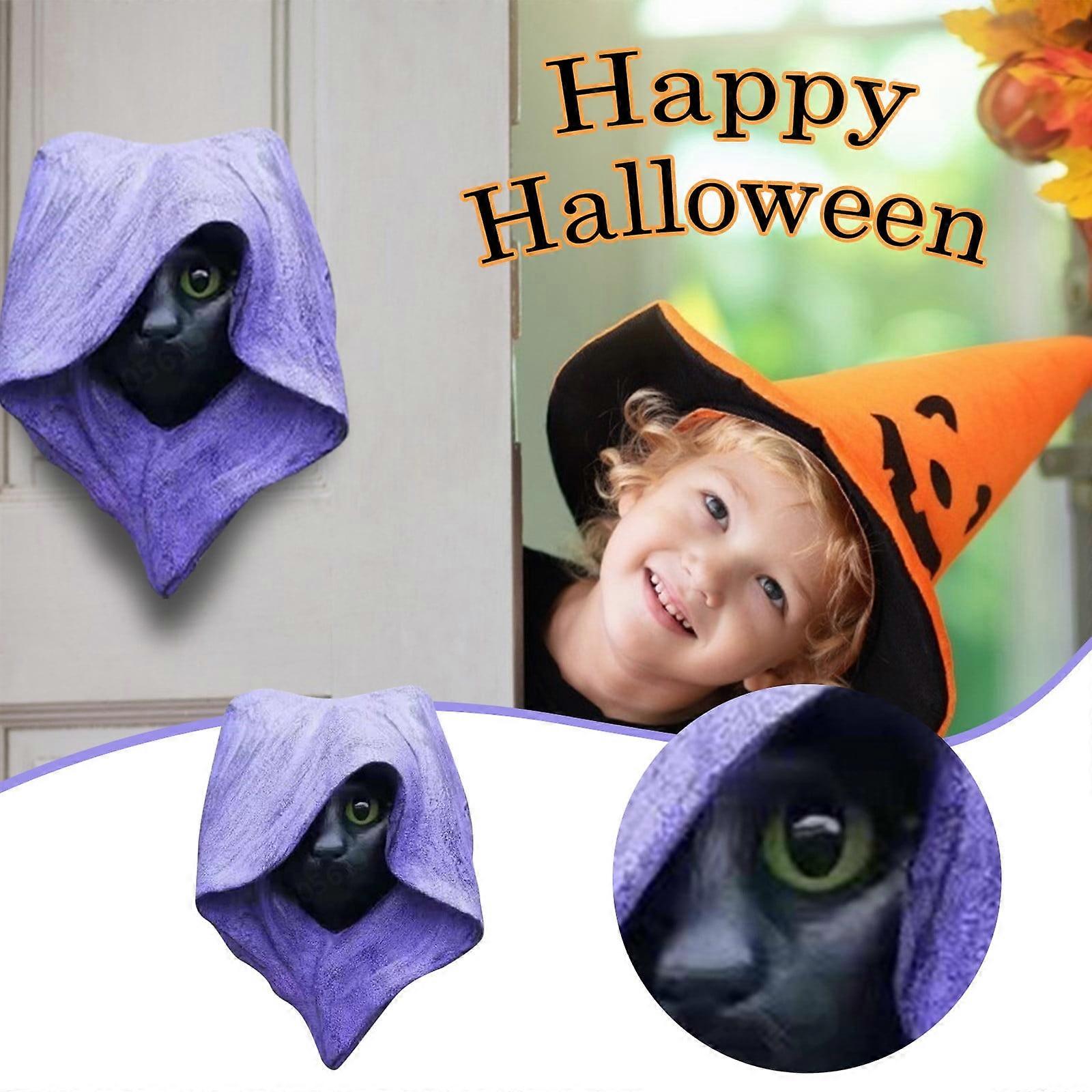 2024 Halloween Decor: Black Hat Cat Statue, Resin Mystic Cat Ornament, Gothic Wall Decor, Compatible with Witch & Pagan Themes