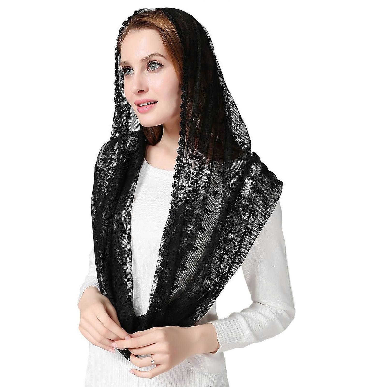 Lace Veils for Church Wedding Attendance Mass Headscarf Veils Mantilla Veils Headcovers for Formal and Religious Gathering Black