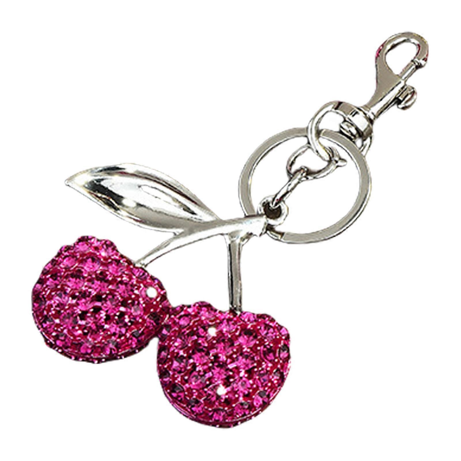 Sparkling 3D Cherry Keychain Charm Bag Accessory Fashionable Rhinestones Fruit Shaped Key Ring Ornament for Women Multicolor