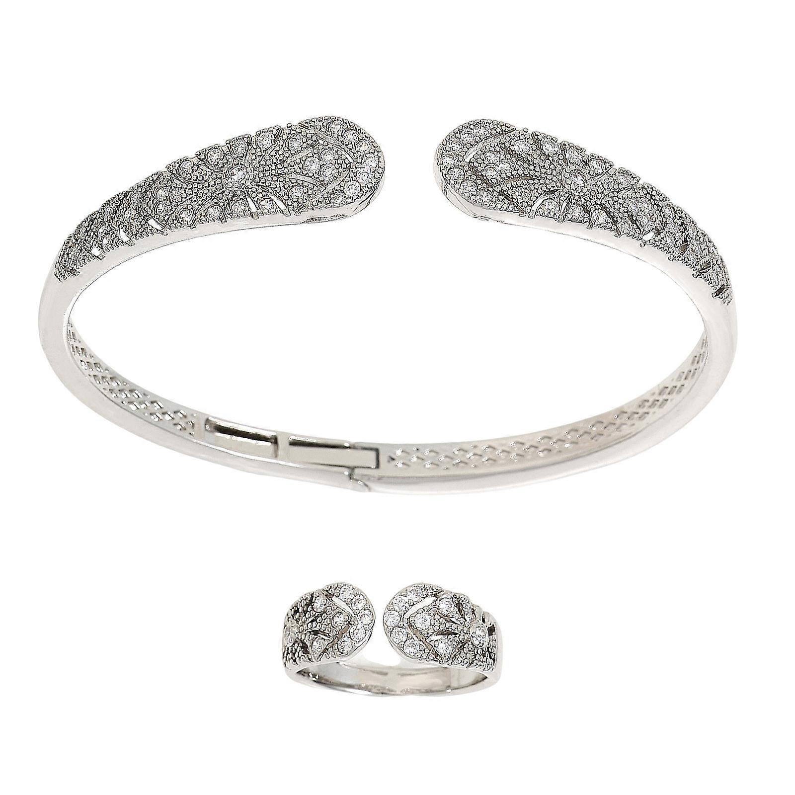 Sparkling Diamonds Inlaid Ring and Bracelet Set Easy Adjustability Modern Fashion Jewelry Trendy Women Accessories Multicolor