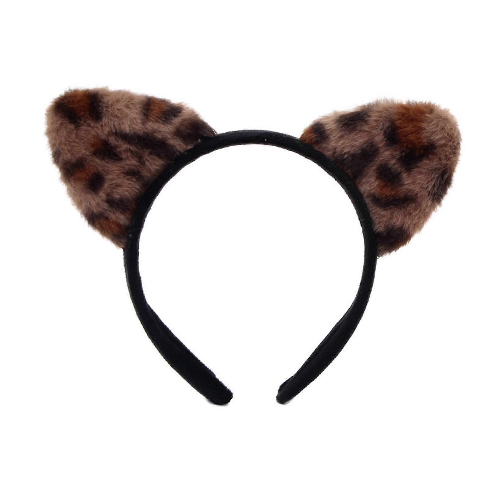 Leopard Pattern Cats Ear Headband Cosplay Costume Hairhoop Masquerades Headwear for Women and Girl Face Washing Hairband Dark Brown