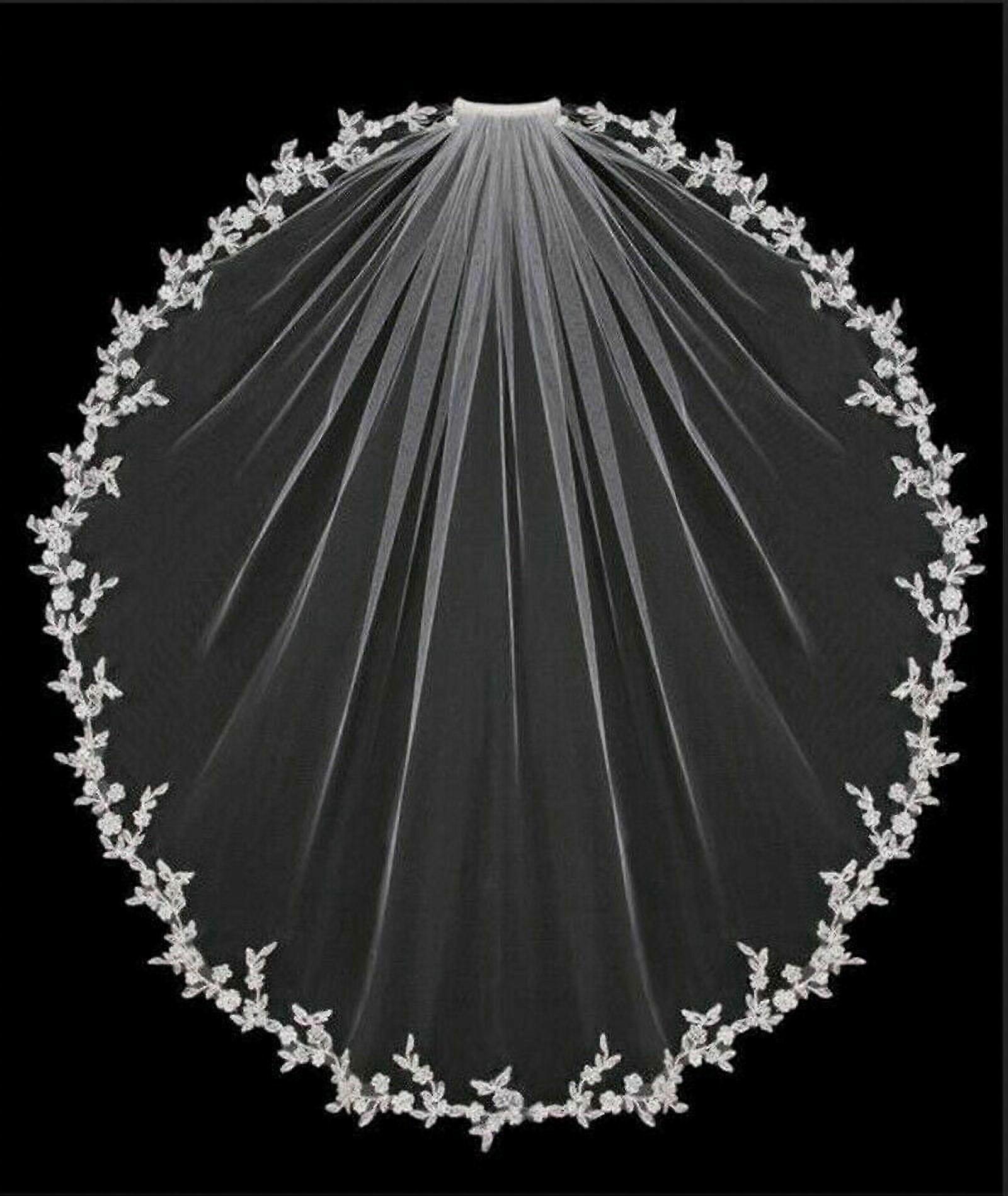 Short bridal veil headpiece, shoulder-length floral lace headpiece, includes a comb.