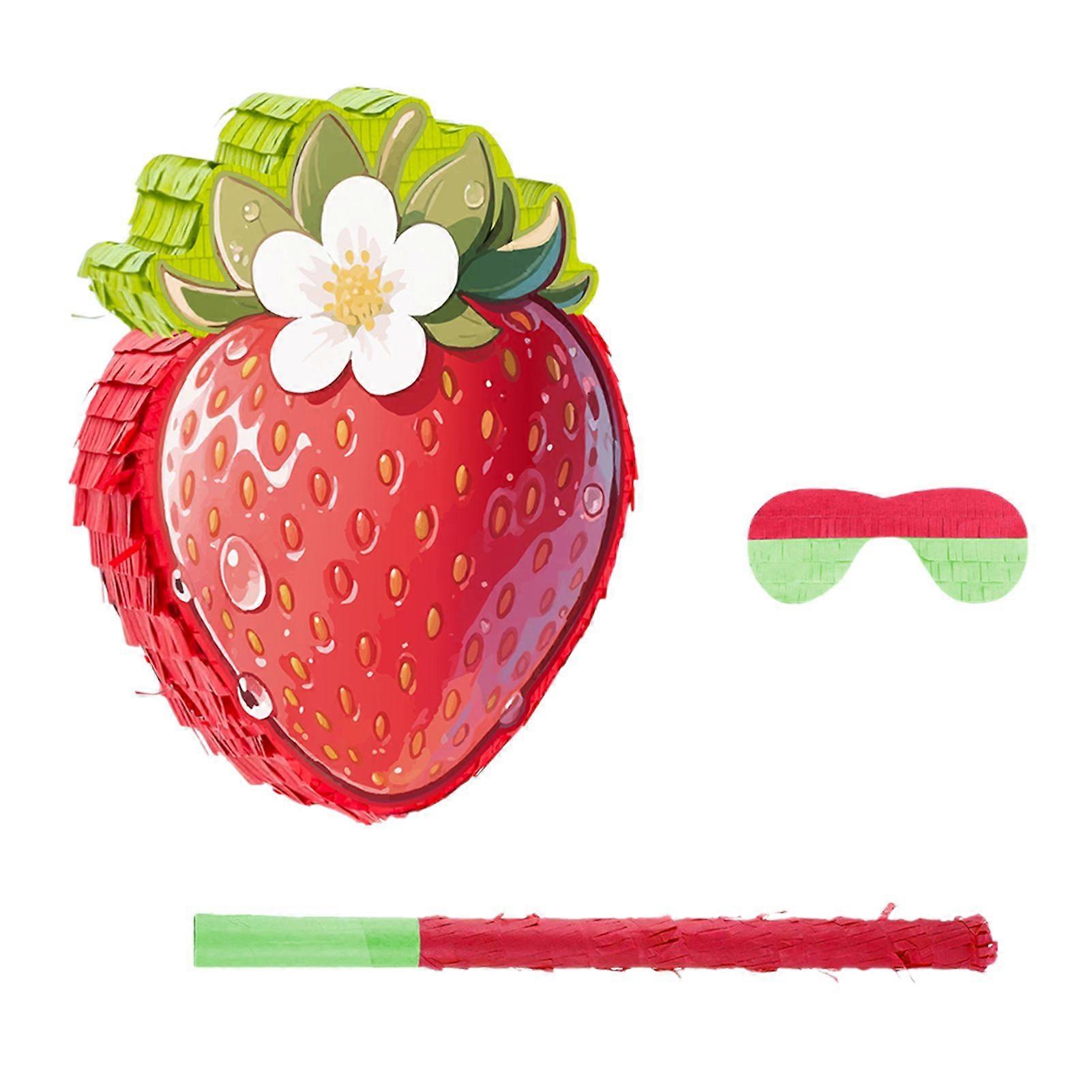 Strawberry Pinata Red Berry Pinata with Blindfold Bat Confetti Summer Fruit Themed Birthday Party Decoration for Kids Baby Shower Supplies