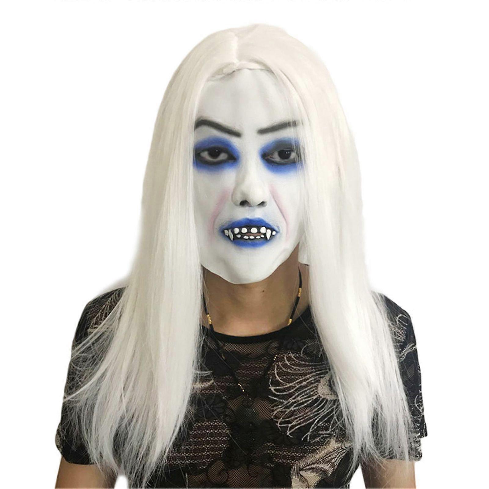 Halloween Horror Grimace Ghost Masque Scary Full Head Latex Zombie Masque with Hair Creepy Halloween Party Cosplay Costume