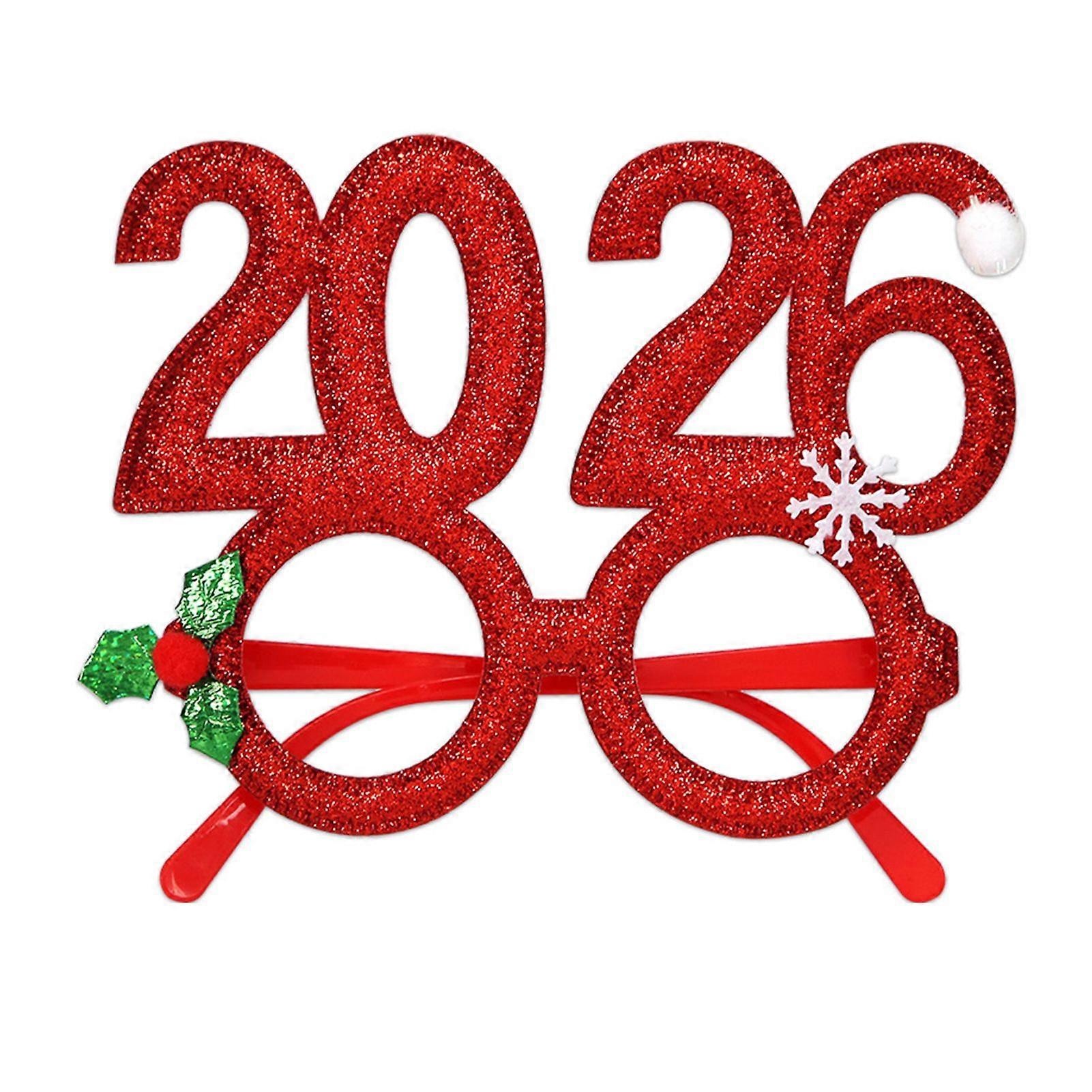 2026 New Year Party Glasses Lightweight Red Glitter Eyewear Frame with Snowflake Holly Decoration Festive Sequin Hair Hoop