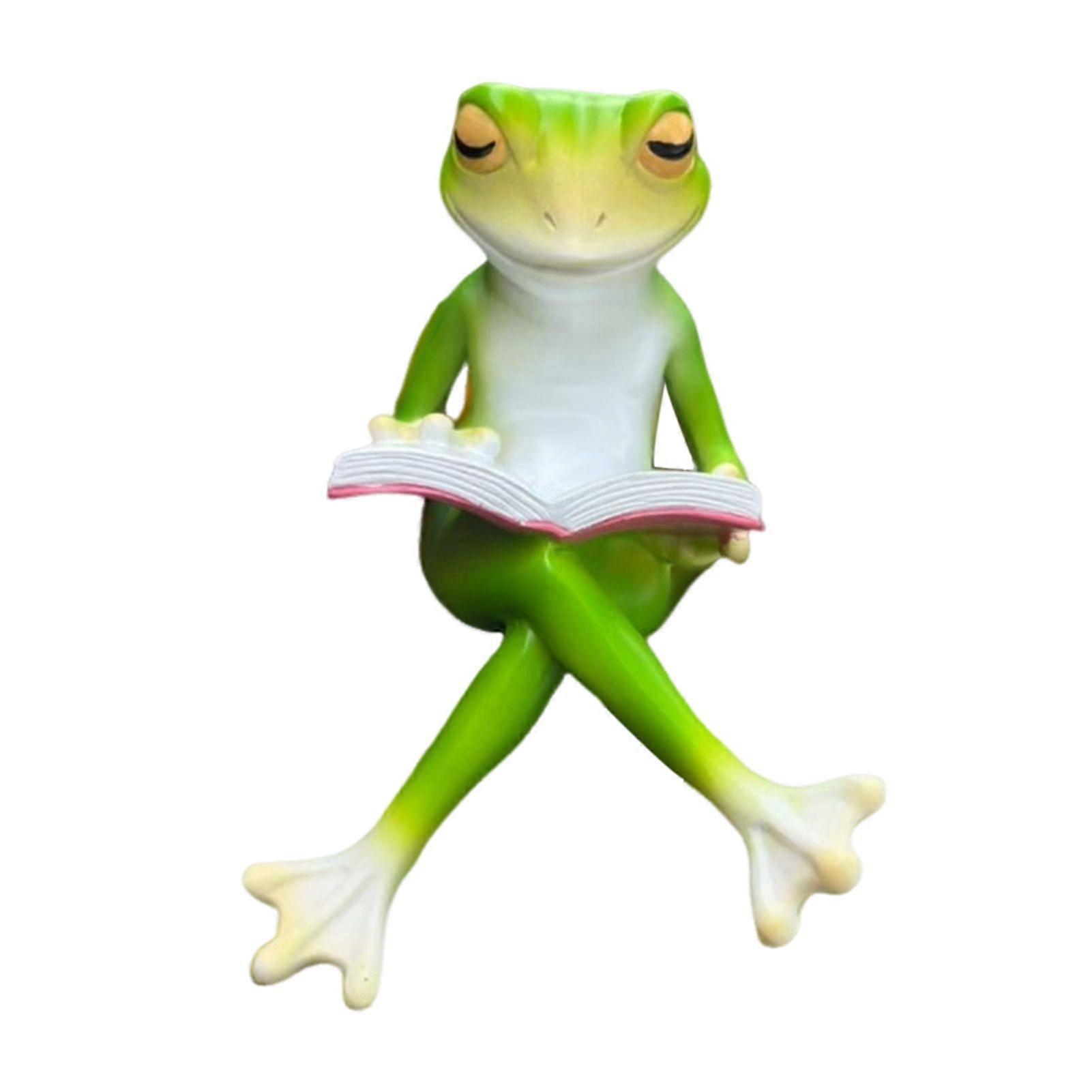 Reading Frog Ornament Synthetic Resin Figurine Leisure Holiday Animal Sculpture Outdoor Indoor Shelves Table Decoration