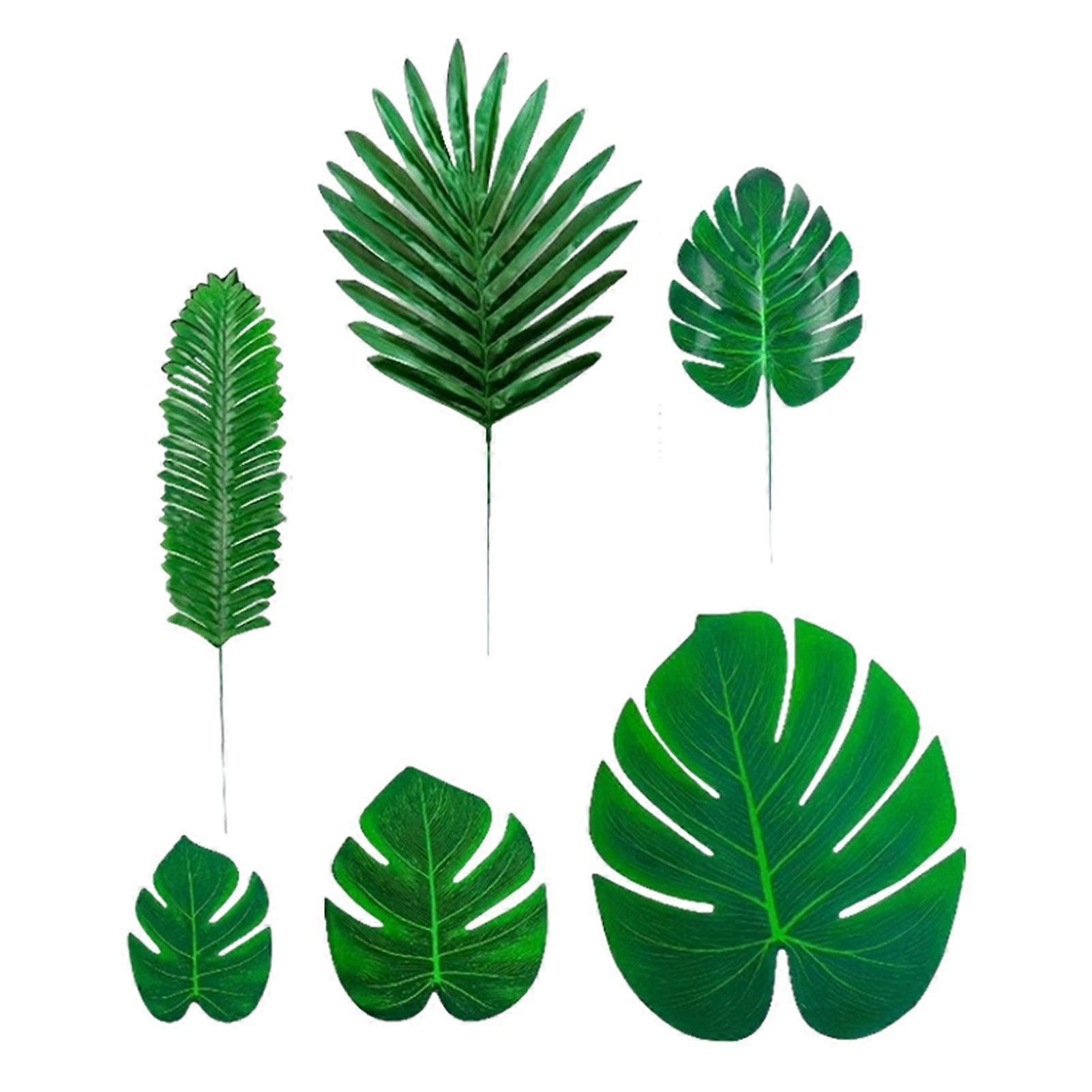 48/88 Pcs Artificial Palm Leaves Faux Tropical Green Leaves Fake Palm Leaf with Stems for Hawaiian Luau Party Baby Shower Wedding Birthday Decor
