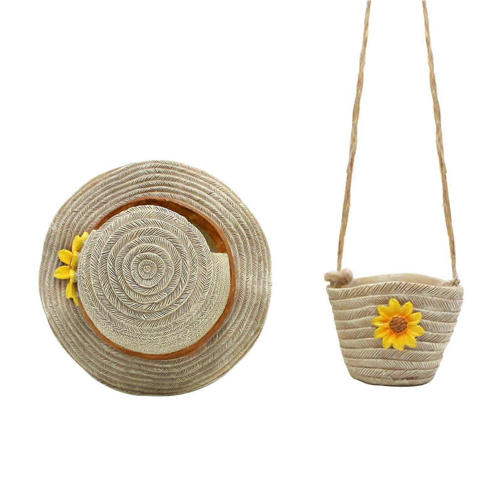 Elevate Your Space: Transform your living areas with these decorative flower pots, ideal for indoor and outdoor use. From balconies to gardens, infuse nature's beauty into any setting effortlessly. Charming Design: Embrace the elegance of straw hat and shoulder bag-shaped pots adorned with intricate three-dimensional flower embellishments. Elevate your decor with a touch of sophistication and allure. Durable Resin Construction: Crafted from robust resin, these pots boast exceptional anti-fading and wear-resistant properties. Enjoy worry-free longevity, even in challenging weather conditions, ensuring lasting beauty. Versatile Functionality: Perfect for potted plants, flowers, succulents, or dried arrangements, these unique pots enhance any space with grace and refinement. Add a touch of elegance to every corner of your home or garden. Thoughtful Gifting: Surprise gardening enthusiasts with these distinctive flower pots, a unique present that celebrates their love for plants. Inspire creativity and joy in their gardening endeavors with this thoughtful gesture. Description: Enhance any space with these decorative flower pots. Perfect for indoor and outdoor use, including balconies and gardens, they bring a touch of nature to any setting. Featuring a charming design of straw hat and shoulder bag shapes with elegant three-dimensional flower decorations, these sturdy resin pots are fade-resistant and durable, ensuring long-lasting beauty even in harsh weather. Ideal for potted plants, flowers, succulents, and dried flowers, these pots add sophistication to any environment. Give the gift of gardening joy with these unique flower pots, perfect for celebrating passion and new beginnings. Item Name: Flower Pot Material: Resin Style: Pastoral Style Features: Anti-fading, Weather-resistant, Decorative Planter Size Details: Hat: Size: 14.2cm x 14.3cm x 6cm/5.59" x 5.63" x 2.36" (Approx.) Hanging Bag: Size: 4.9cm x 3.5cm x 4cm/1.93" x 1.38" x 1.57" (Approx.) Notes: Due to the light and screen setting difference, the item's color may be slightly different from the pictures. Please allow slight dimension difference due to different manual measurement. Package Includes: 1 x Hat Flower Pot 1 x Hanging Bag Flower Pot