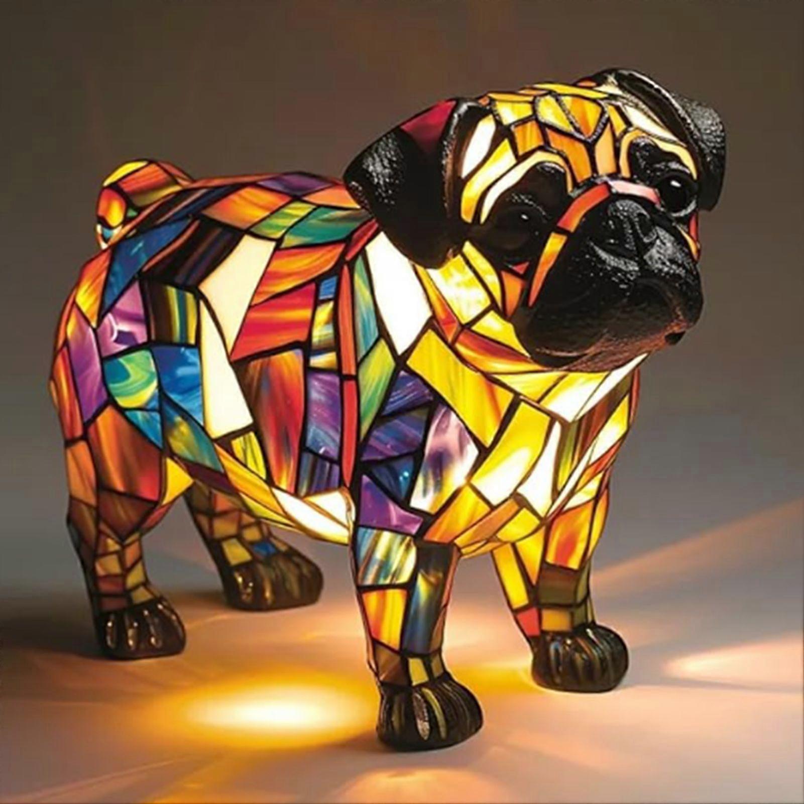 Corgi Desk Lamp Retro Stained Resin Night Light Dog Themed LED Table Lamp for Home Bedside Table Decor Dog Lovers Gift