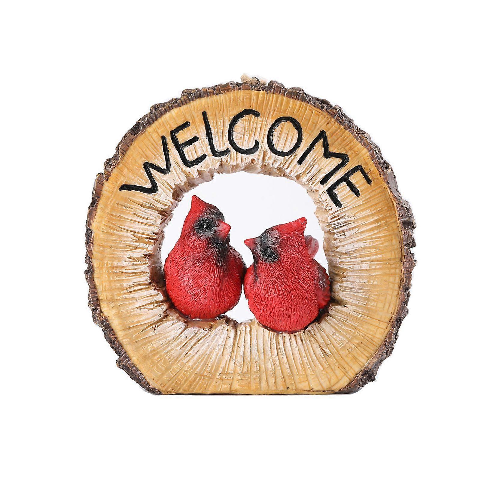Couple Red Bird Figurine Resin Bird Garden Hanging Decoration Outdoor Bird Statue with Hanging Rope for Porch Home Indoor Outdoor Decor