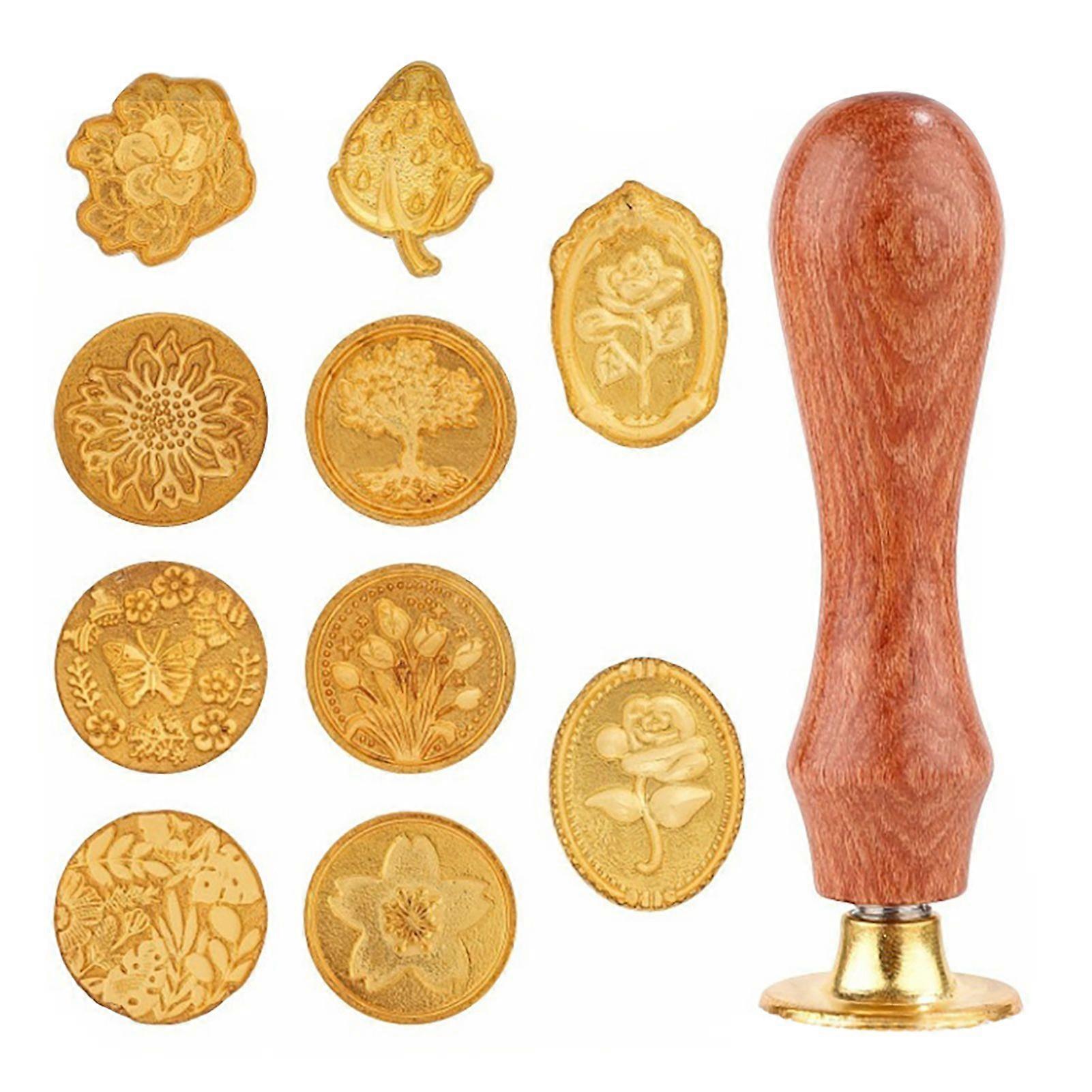 Wax Seal Stamp Set Sealing Wax Stamp Heads with Wooden Handle Multiple Patterns Wax Seal Stamp Set for Letter Greeting Cards Gifts Decoration