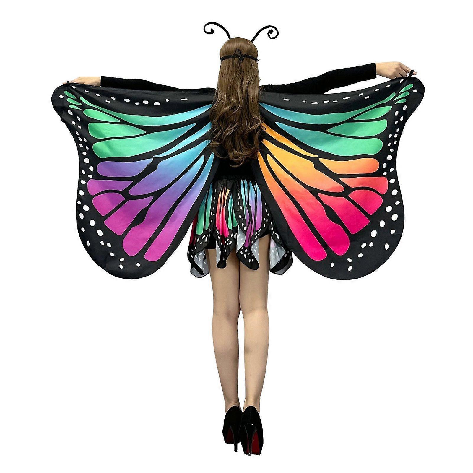 Butterfly Cape Women 3D Digital Printed Butterfly Pattern Shawl with Skirt Comfortable Butterfly Wings Halloween Parties Shawl
