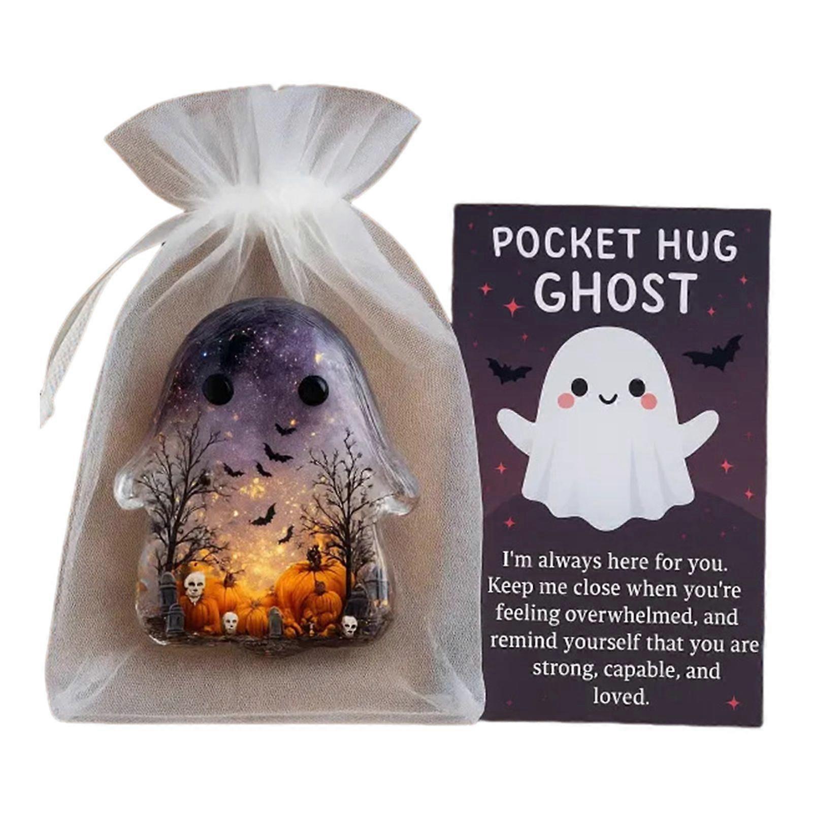 Ghost Pocket Cards Pocket Hug Ghost with Encouragement Card Cute Mini Resin Ghost Emotional Support Token Inspirational Gifts for Friends Family