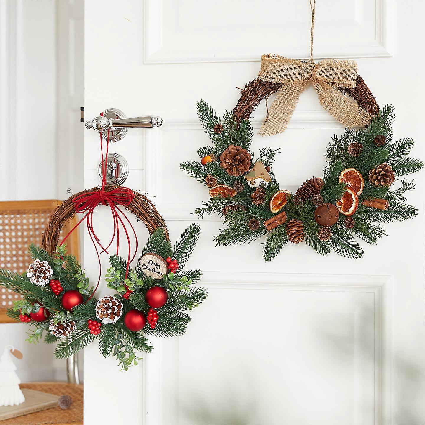 Christmas Woven Wreath with Bells, Bow & Red Berries, Door & Window Hanging Decoration