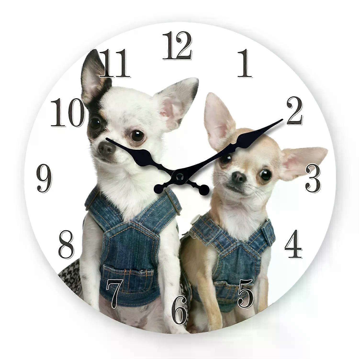Modern Two-Wearing Chihuahua Background Pattern Wooden Wall Clock Living Room Bedroom Kitchen Home Decoration Wall Clock Silent Quartz Clock Holiday G
