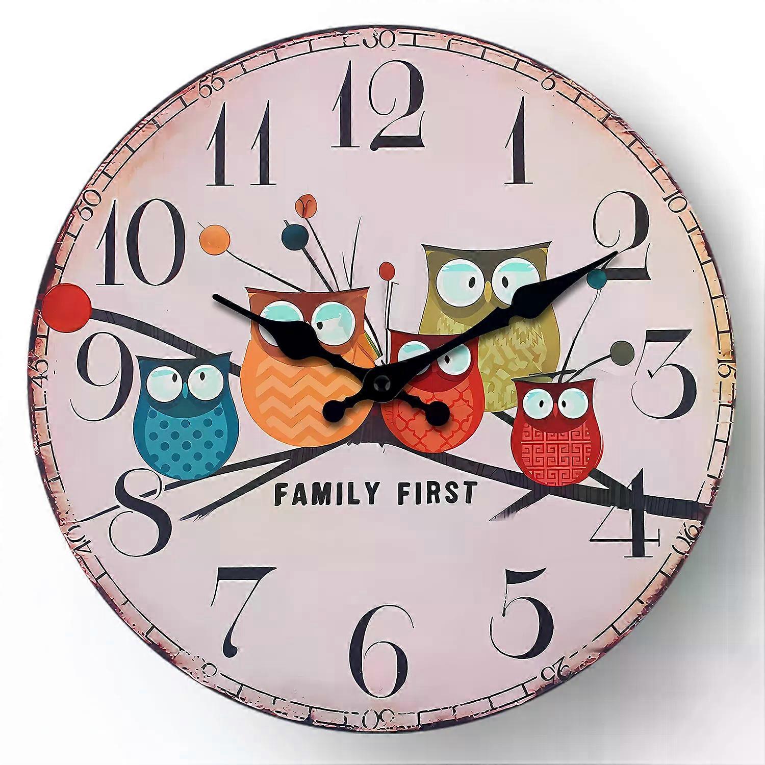 Cartoon Owl Pattern Wooden Wall Clock Living Room Bedroom Kitchen Home Decoration Wall Clock Silent Quartz Clock Holiday Gift 10 Inches 12 Inches 14 I