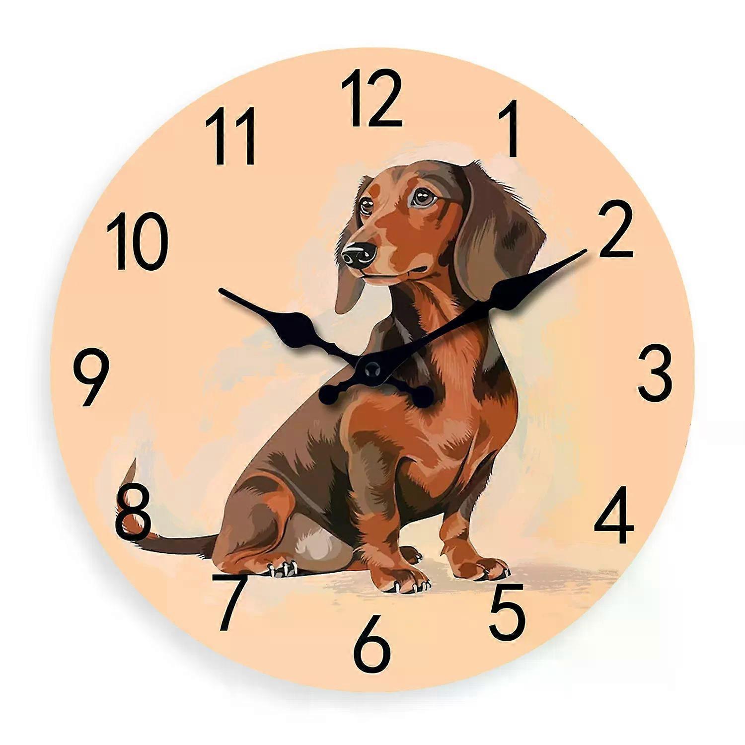 Creative Dachshund Dachshund Pattern Wooden Wall Clock Living Room Bedroom Kitchen Home Decoration Wall Clock Silent Quartz Clock Holiday Gift 10 Inch