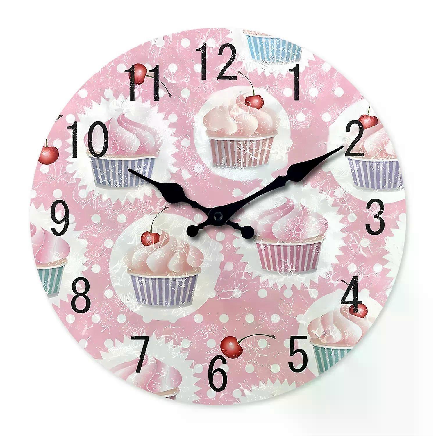 Cute Colorfulful Cupcake Polka Pattern Wooden Wall Clock Living Room Bedroom Kitchen Home Decoration Wall Clock Silent Quartz Clock Holiday Gift 10 In