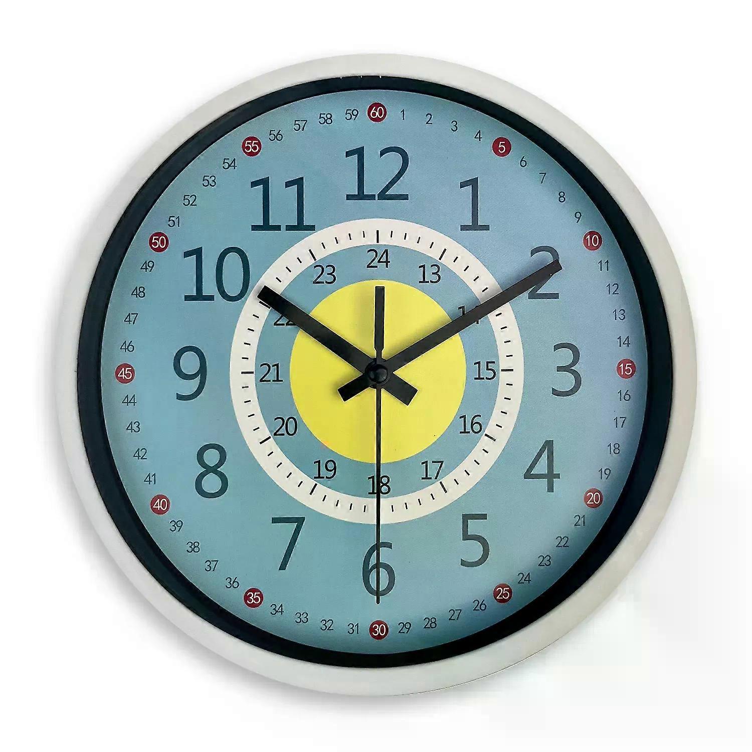 8inch Modern Simple Blue and Yellow Background Pattern Plastic Glass Wall Clock Living Room Bedroom Kitchen Home Decoration Wall Clock Silent Quartz C