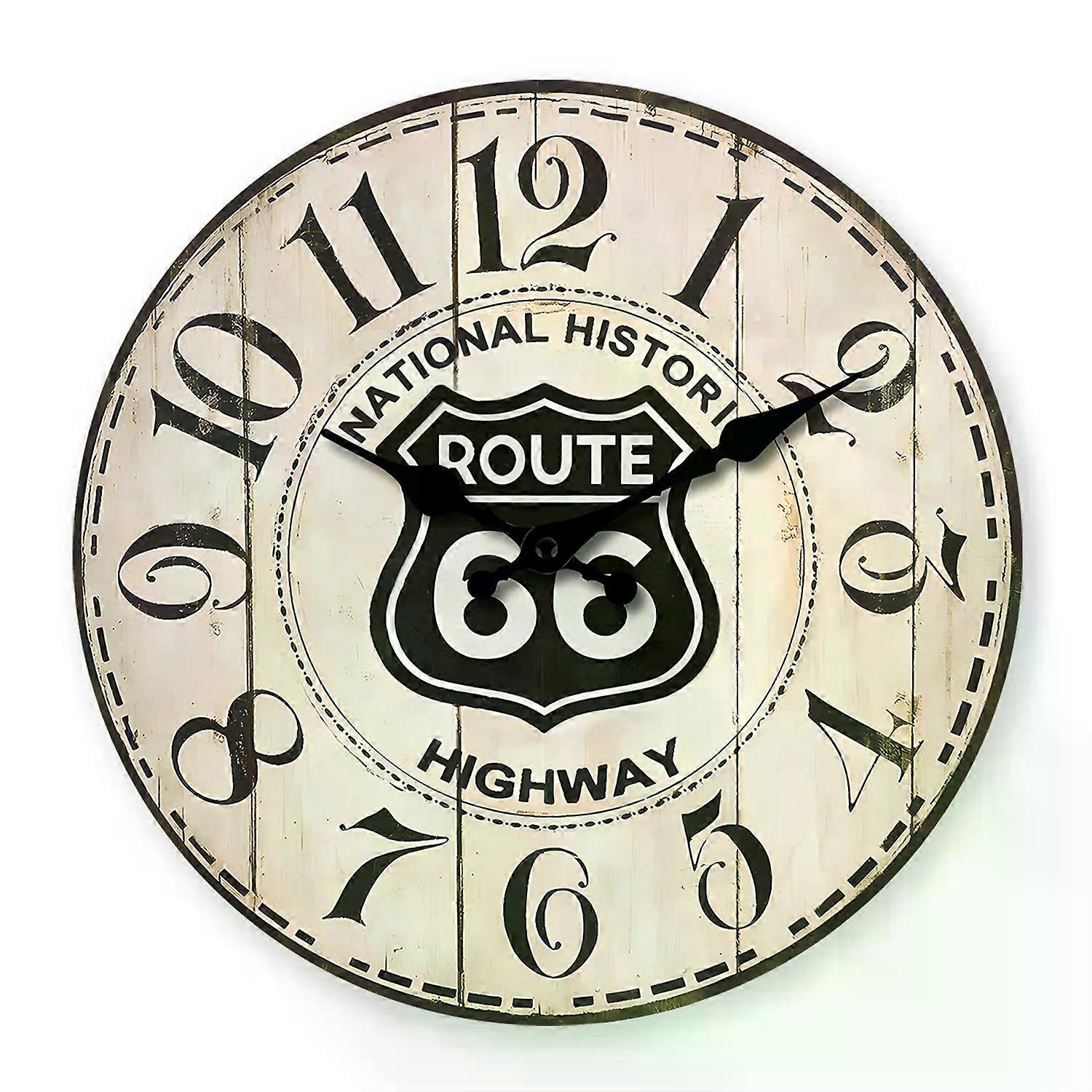 Retro No. 66 Highway Pattern Wooden Wall Clock Living Room Bedroom Kitchen Home Decoration Wall Clock Silent Quartz Clock Holiday Gift 10 Inches 12 In