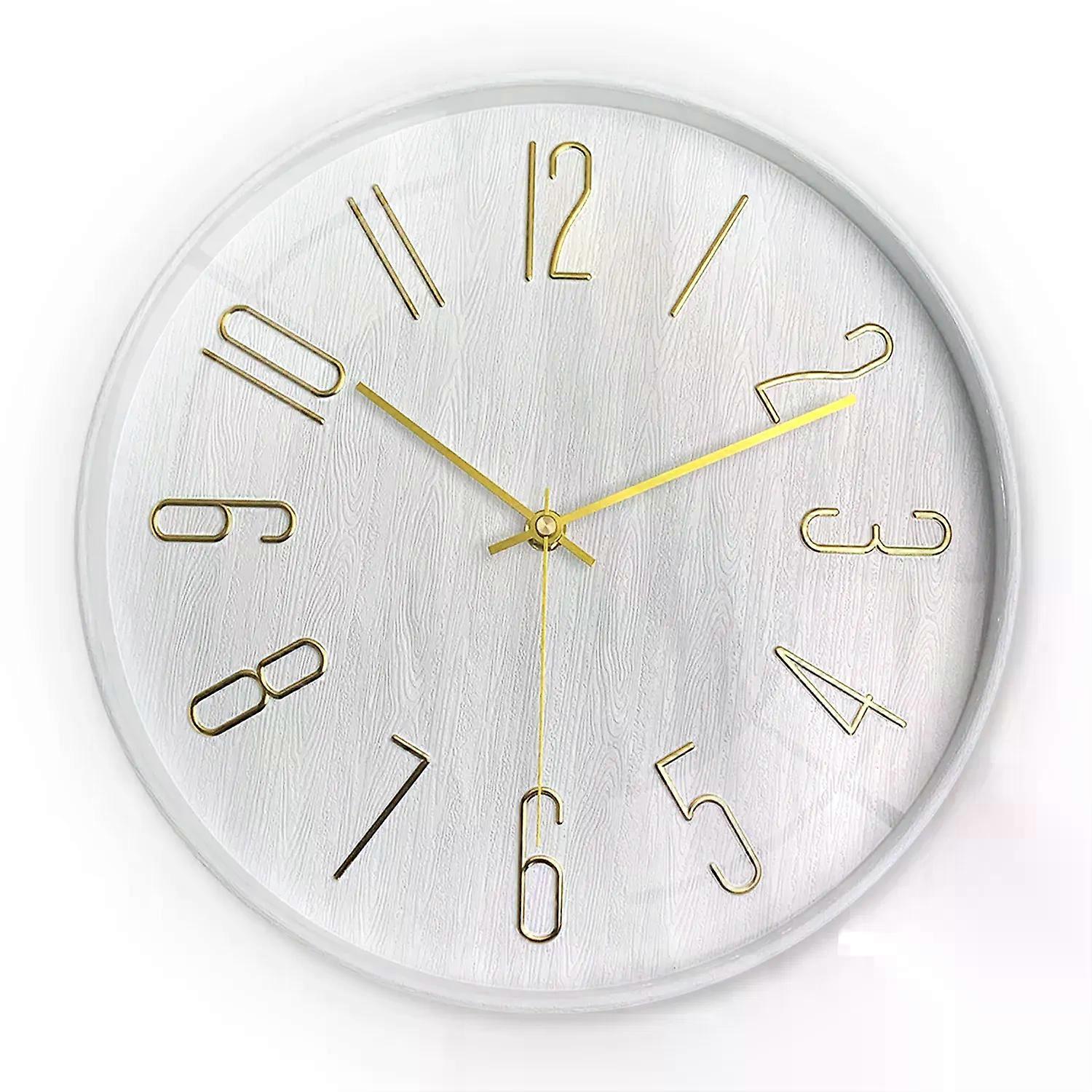 12inch Casual Stereo Digital Imitation Wood Grain Texture Plastic Glass Wall Clock Living Room Bedroom Kitchen Home Decoration Wall Clock Silent Quart