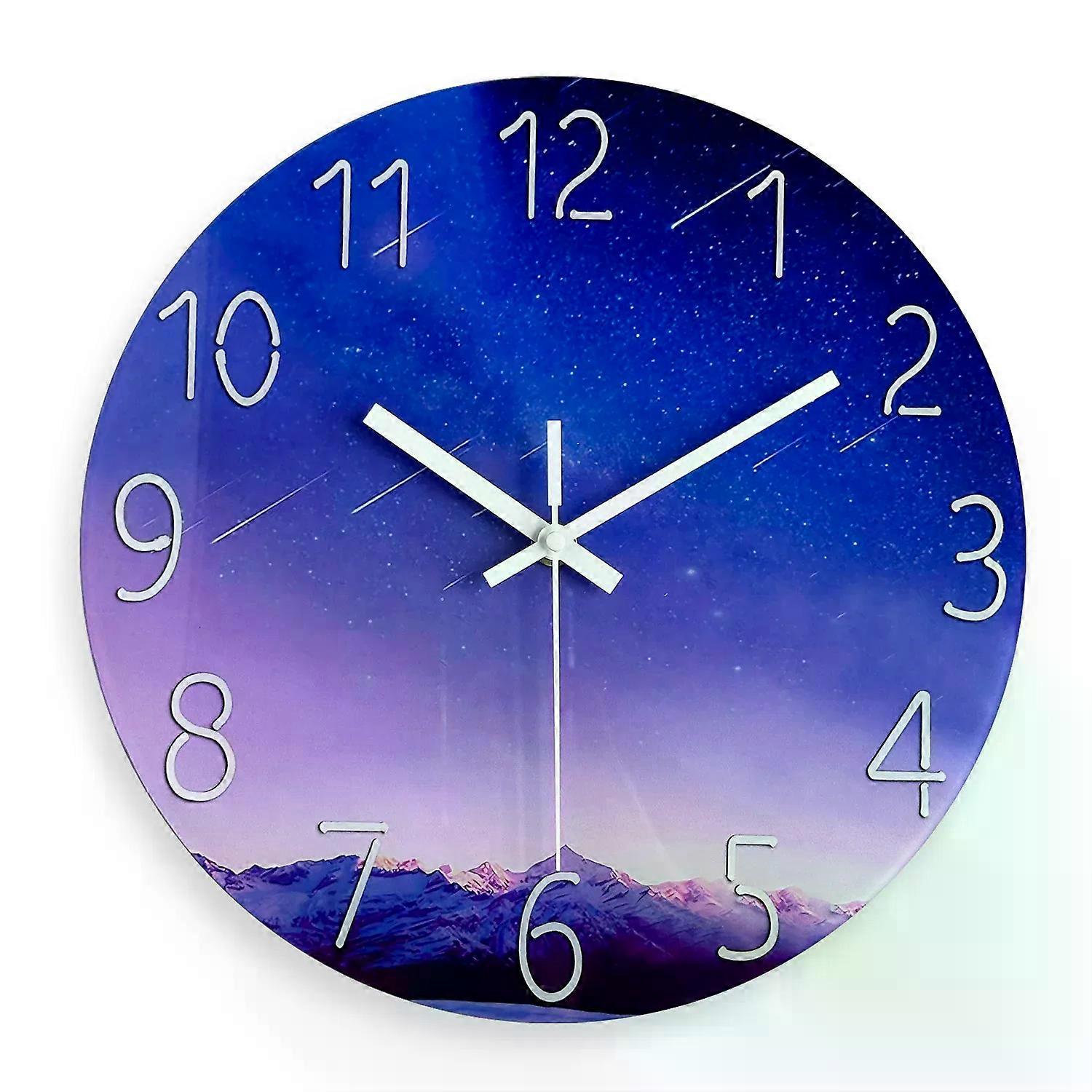 Modern Stylish Starry Sky Meteor Pattern Tempered Glass Wall Clock Living Room Bedroom Kitchen Home Decoration Wall Clock Silent Quartz Clock Holiday
