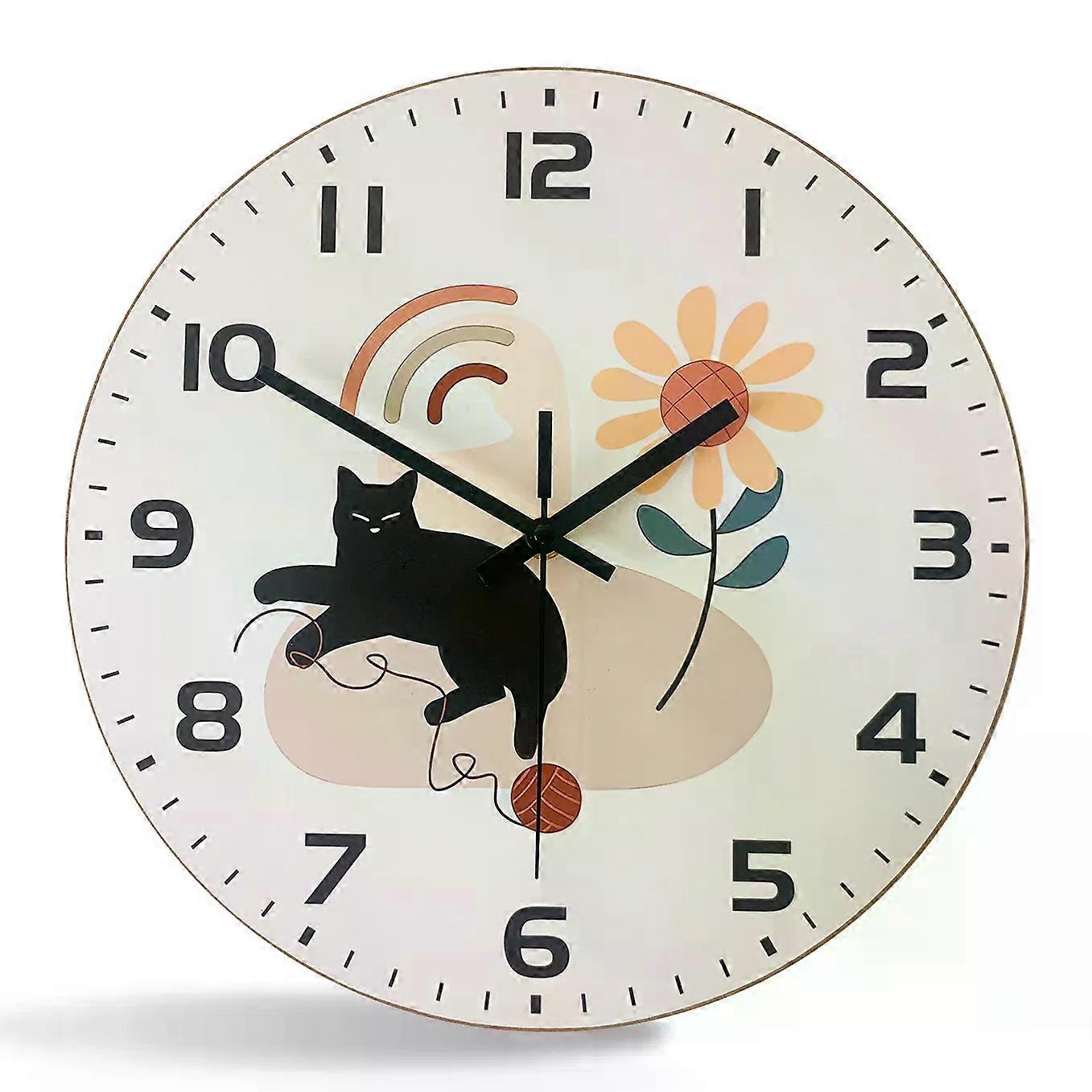 Casual Black Cat Sunflower Pattern Wooden Wall Clock Living Room Bedroom Kitchen Home Decoration Wall Clock Silent Quartz Clock Holiday Gift 10 Inches