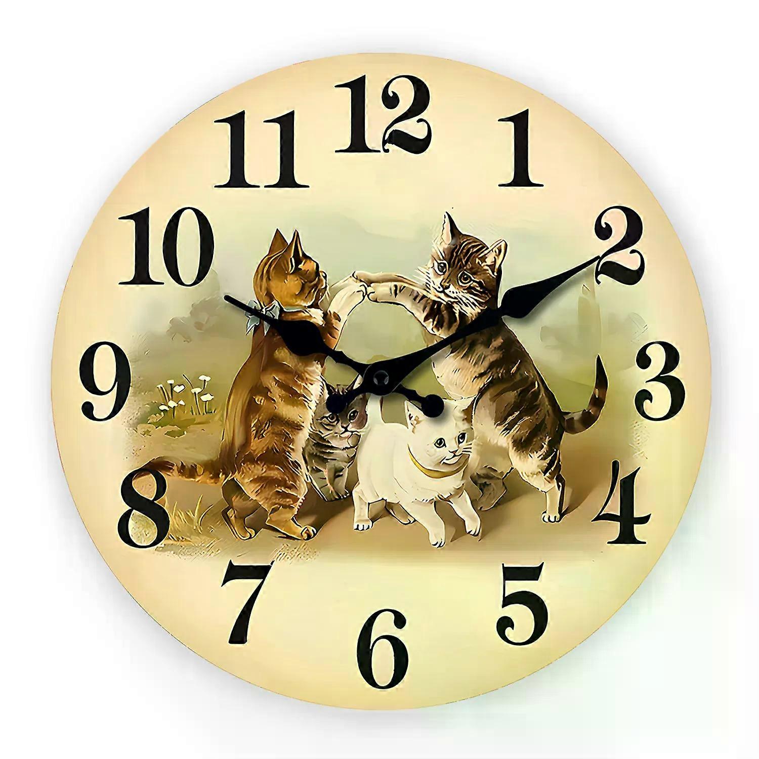Cute Cartoon Pet Cat Game Wooden Wall Clock Living Room Bedroom Kitchen Home Decoration Wall Clock Silent Quartz Clock Holiday Gift 10 Inches 12 Inche