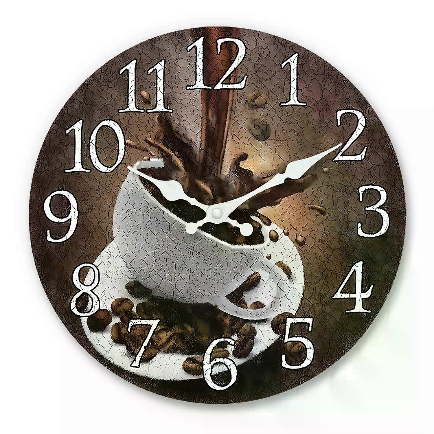 American Retro Coffee Cup Pattern Wooden Wall Clock Living Room Bedroom Kitchen Home Decoration Wall Clock Silent Quartz Clock Holiday Gift 10 Inches