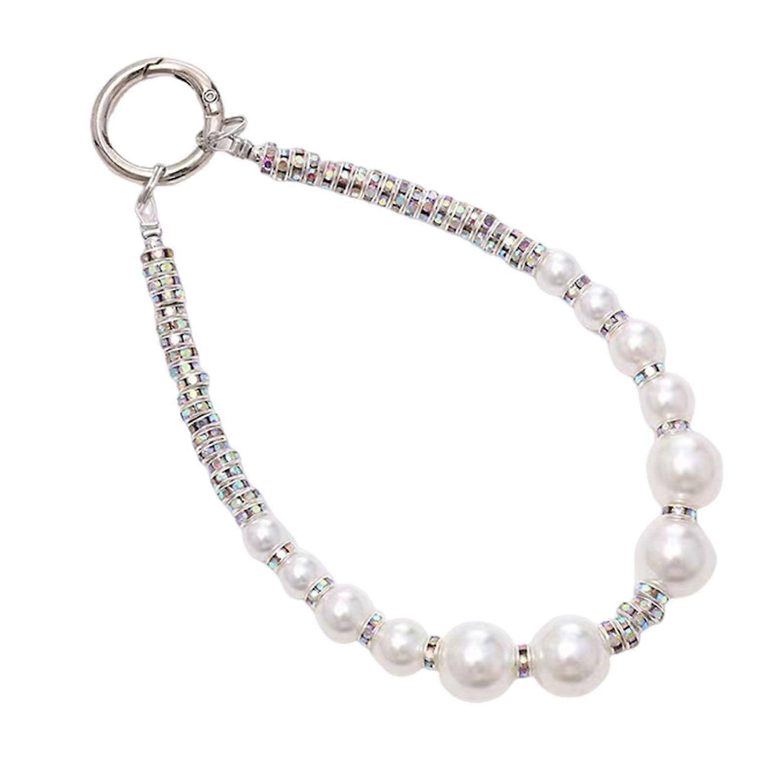 Mengxi Mobile Phone Wrist Strap Beaded Faux Pearl Charm Anti-Theft Phone Lanyard Fashionable Hands-Free Bracelet Rhinestone Phone Strap
