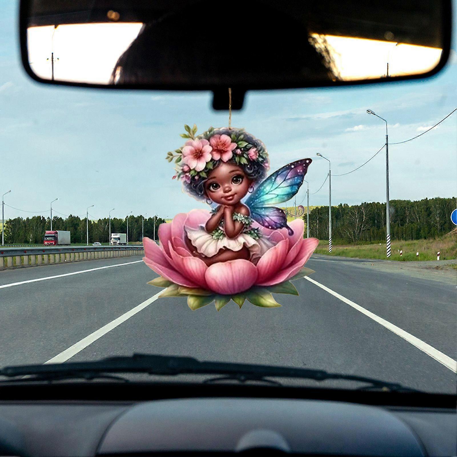 Mengxi Pink Fairy Car Hanging Ornament Cute Rear View Mirror 2D Flat Pendant Vibrant Decor for Car Interior