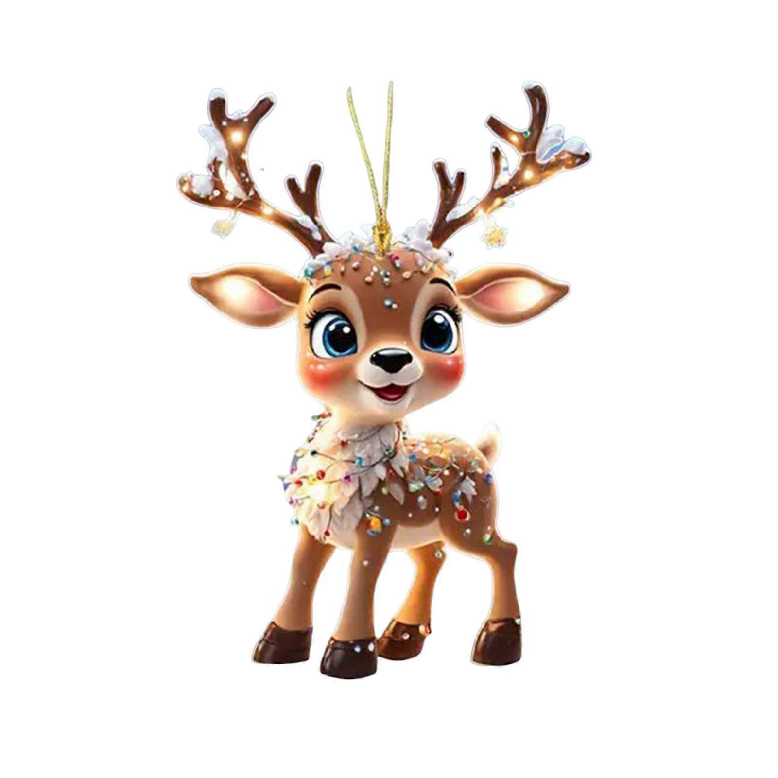Mengxi Christmas Reindeer Ornaments 2D Flat Acrylic Car Mirror Pendant Festive Holiday Home Tree Decorations
