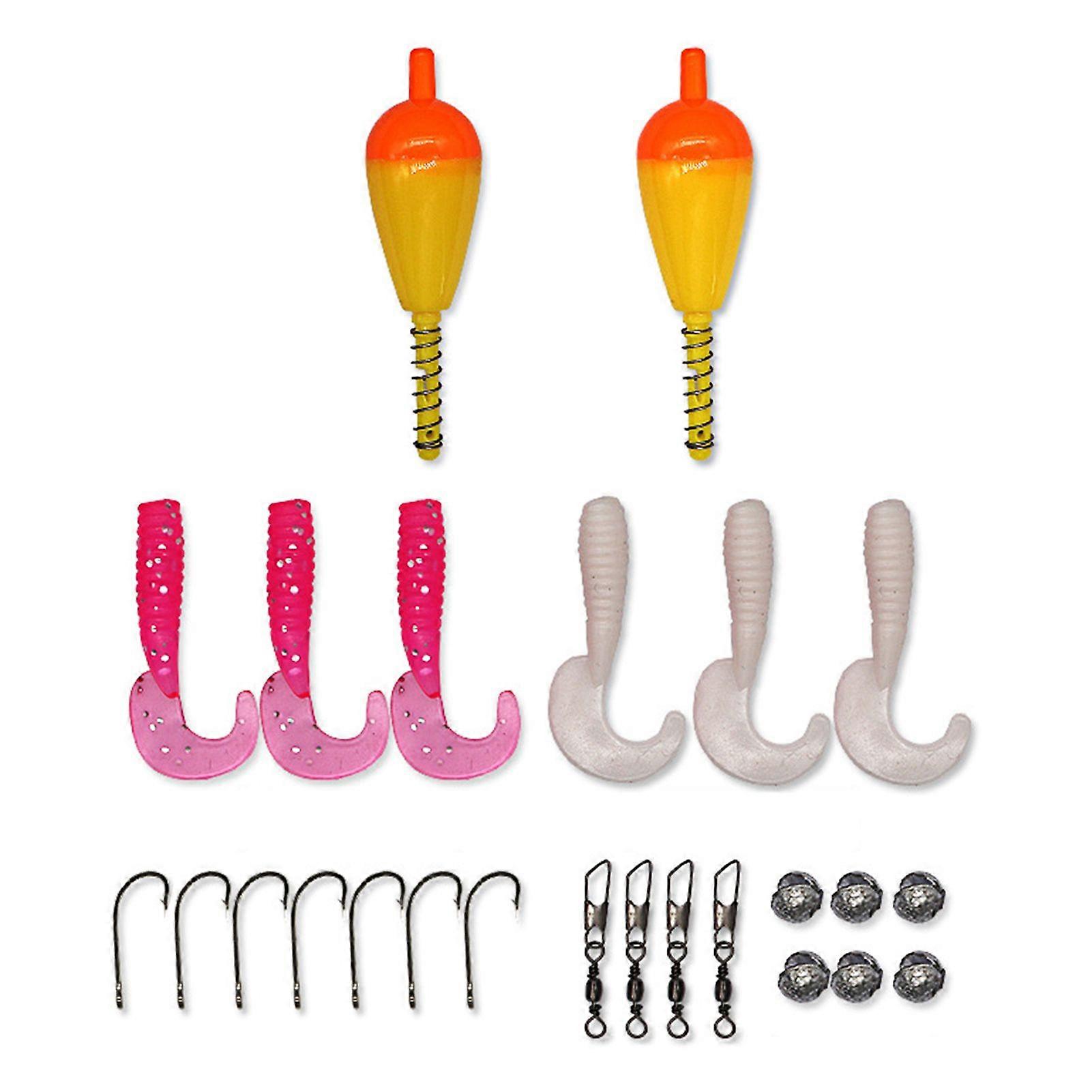 Mengxi 25Pcs/Set Beginner Fishing Kit with Curly Tail Bait Swivel Fishing Float Metal Barbed Hook Sinker Freshwater Saltwater Fishing Accessories