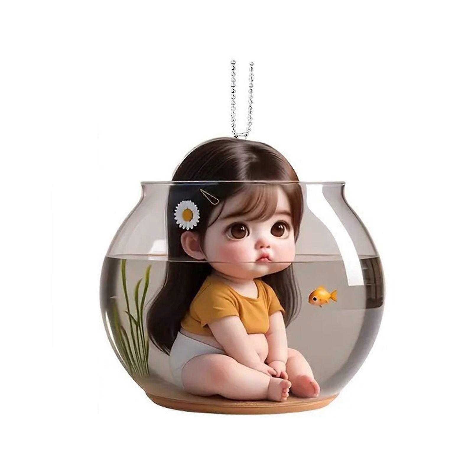 Mengxi Cute Little Girl Pendant Hanging Ornament with Lanyard Easy to Hang Versatile Novelty Rearview Mirror Decoration