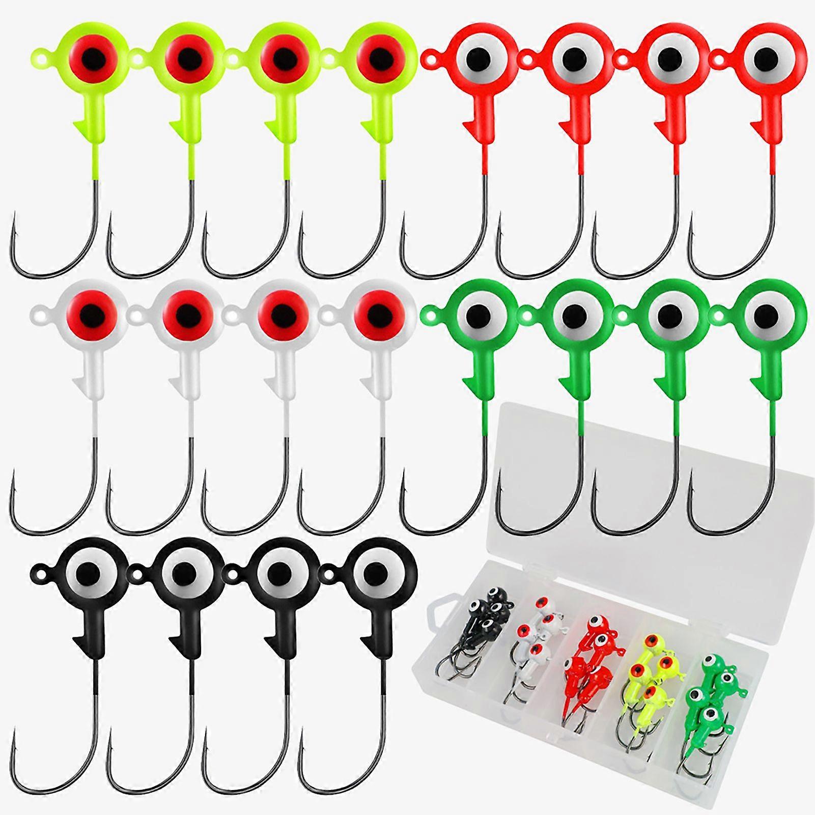 Mengxi 20Pcs 2.5CM/2.5G Colorful Eyes Fishhook Heavy Duty Metal Barbed Round Head Fishing Hook Freshwater Saltwater Bass Fishing Accessories