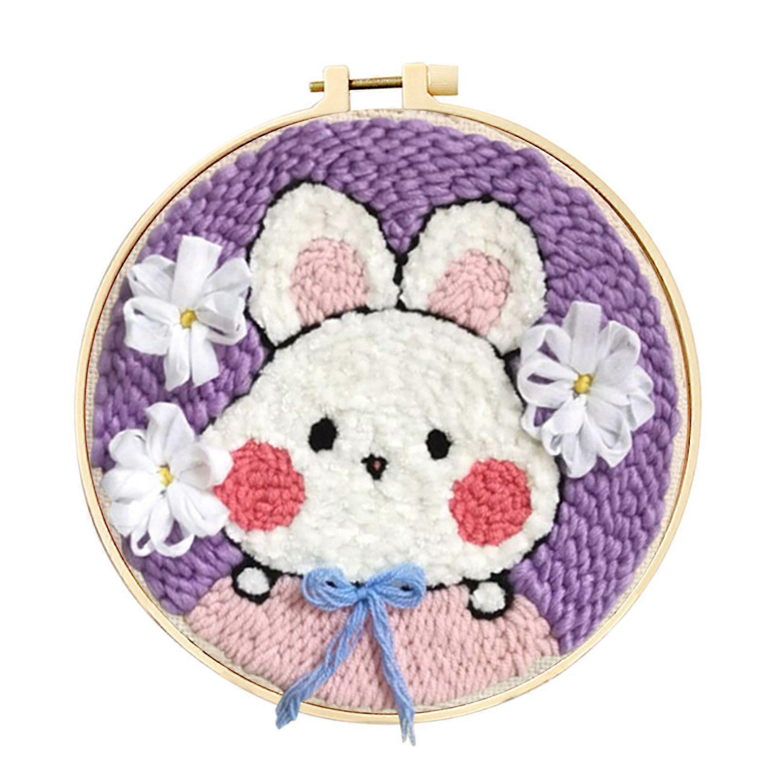 Mengxi DIY Punch Stitch Kit for Beginners Cartoon Pattern with Punch Needle Hoop Punch Stitch Starter Craft Set for Adults Children