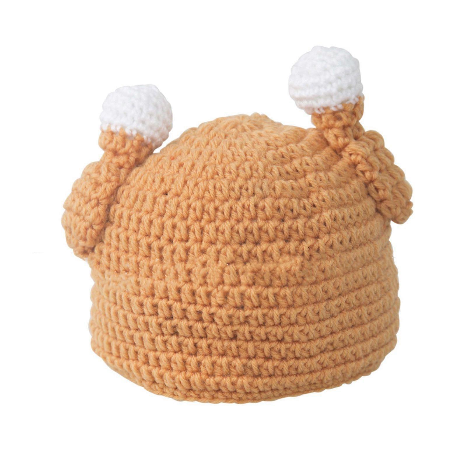 Mengxi Children Knitted Hat with Chicken Leg And Wig Decor Thick Keep Warm Kids Photo Prop Headwear Highly Elastic Winter Beanie for Parties Travel