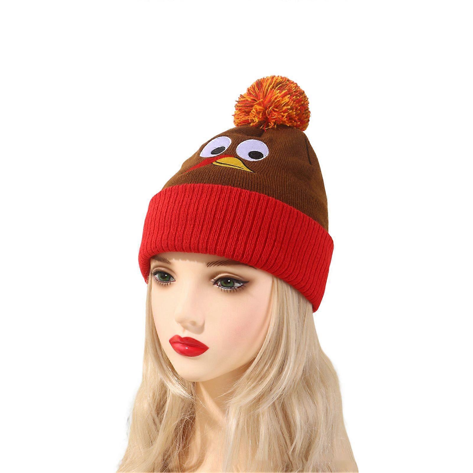 Mengxi Couple Winter Hat Thanksgiving Hat Turkey Wool Hat Elastic Thick Unisex Pom-pom Hat Keep Warm Headwear