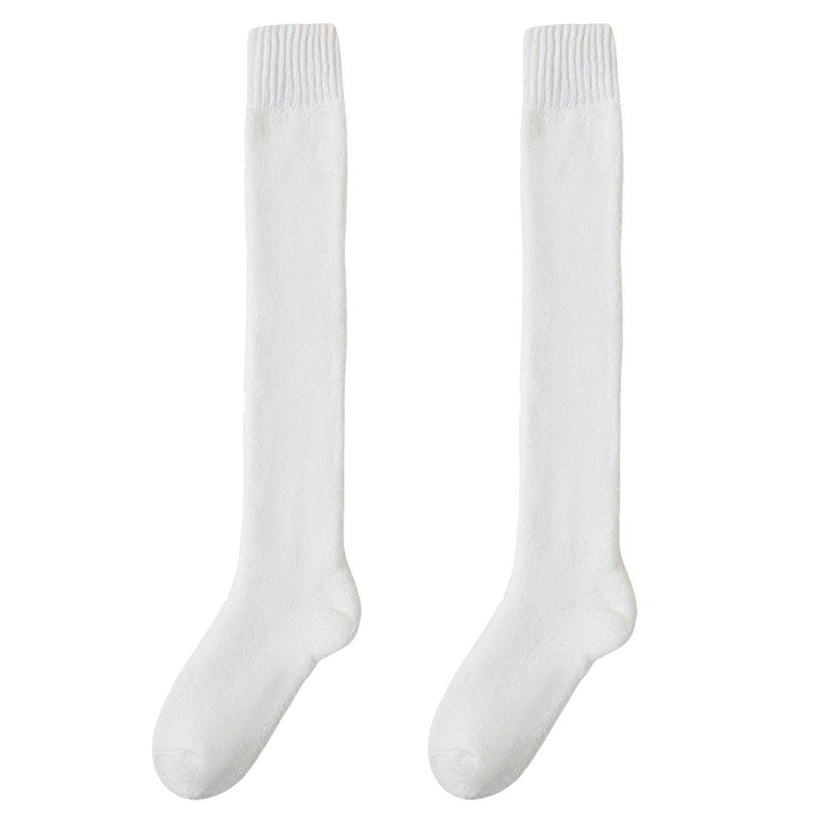 Mengxi 1 Pair Women Winter Socks Over Knee Socks Anti-slip Wool Blend Solid Color Warm Thickened Stockings Warmth Socks for Various Occasions