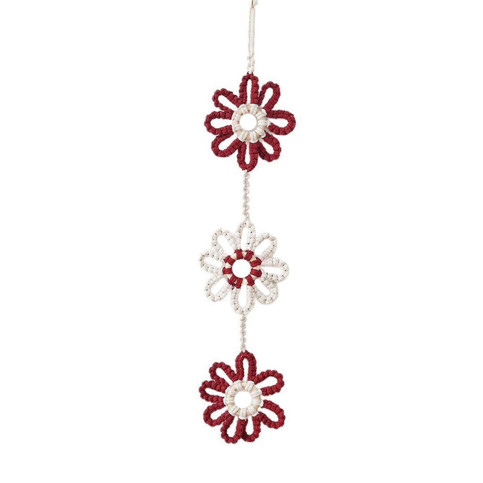 Color Blocking Flower Design Handwoven Cotton Wall Hanging Macrames Art Piece Pendant For Contemporary Space Nursery Burgundy