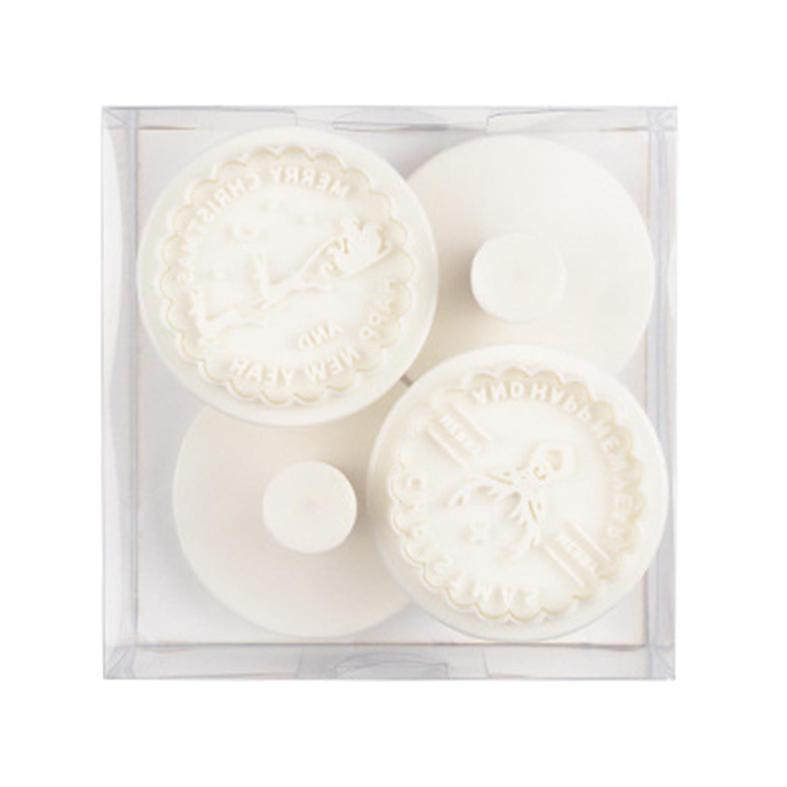 4 Pcs Christmas Cookie Cutters Round Pressable Biscuits Mold Plastic Cookie Stamps DIY Baking Tool Fondant Cake Mould Multicolor