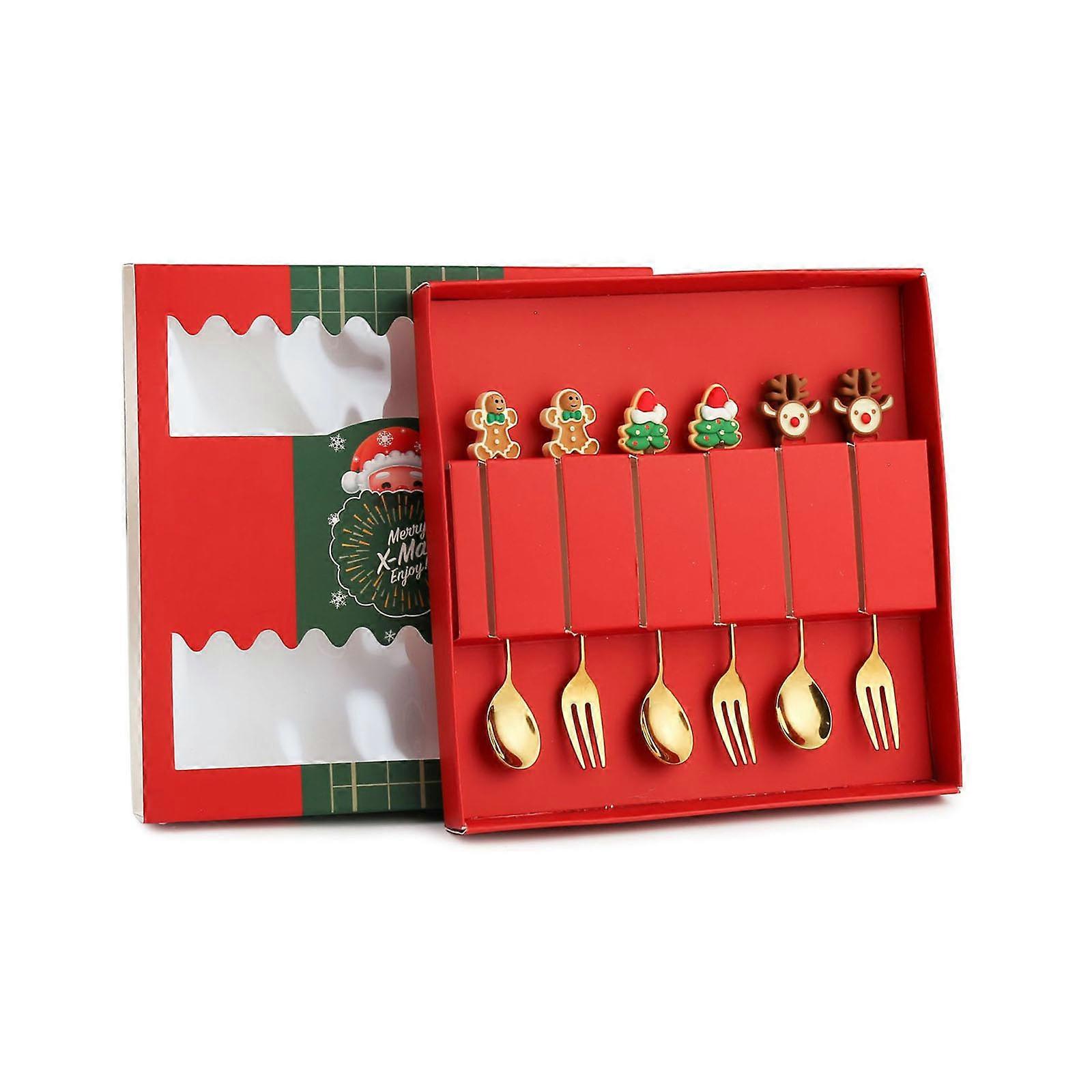 6 PCS Appetizers Cake Fruit Fork Stainless Steel Cake Spoon Tasting Dessert Forks Stirring Spoons 2 Styles for Party Multicolor