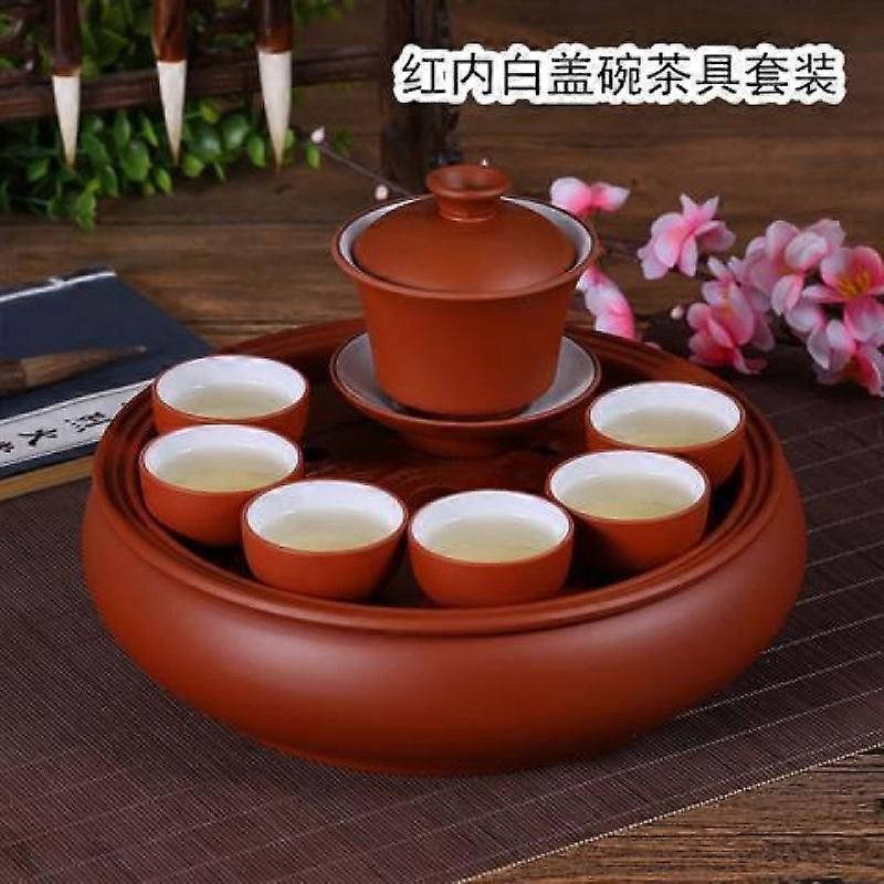 Hongsheng Red-Inner White-Gaiwan Tea Set, Hongsheng Default Special Price Tea Set, Home Kung Fu Purple Clay Tea Tray, Chaoshan Ceramic