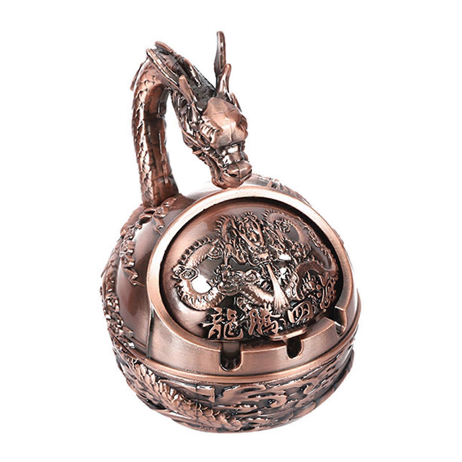 Modern Dragon Pattern Ashes Tray Metal Carving Zodiacs Theme Ashtray with Lid for Living Space Home Office Decors Red copper