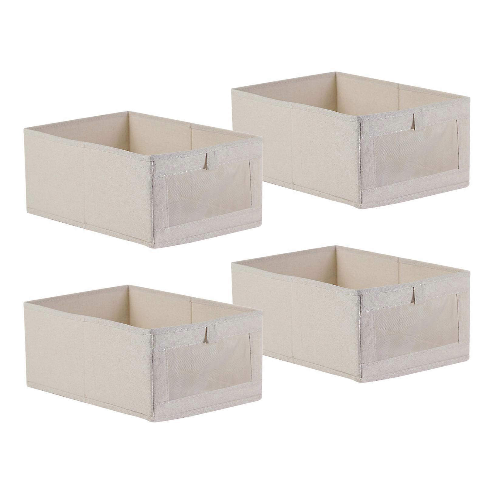 4 Pieces Breathable Closet Organizers Baskets Foldable Linen Seasonal Clothing Storage Container with Clear Window Multicolor