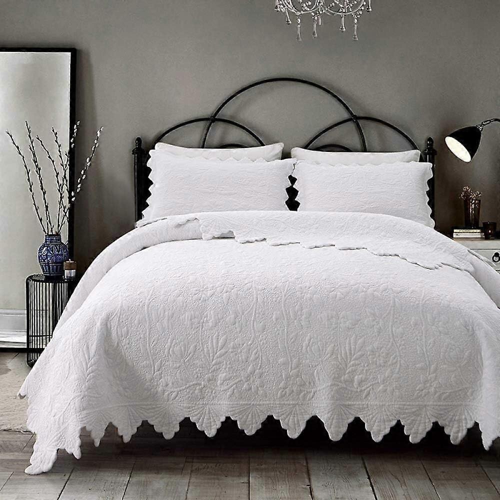 Cotton Patchwork Quilted Bedspread Super King 3 Piece Set with Pillowcases, White