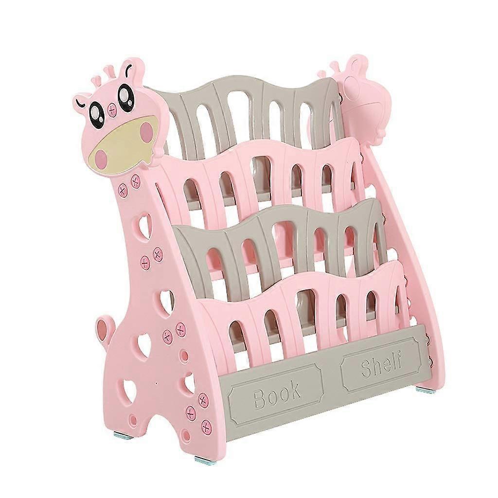 Children's Bookcase 4 Tier Plastic Bookshelf for Nursery Baby Room Magazine and Album Display Pink
