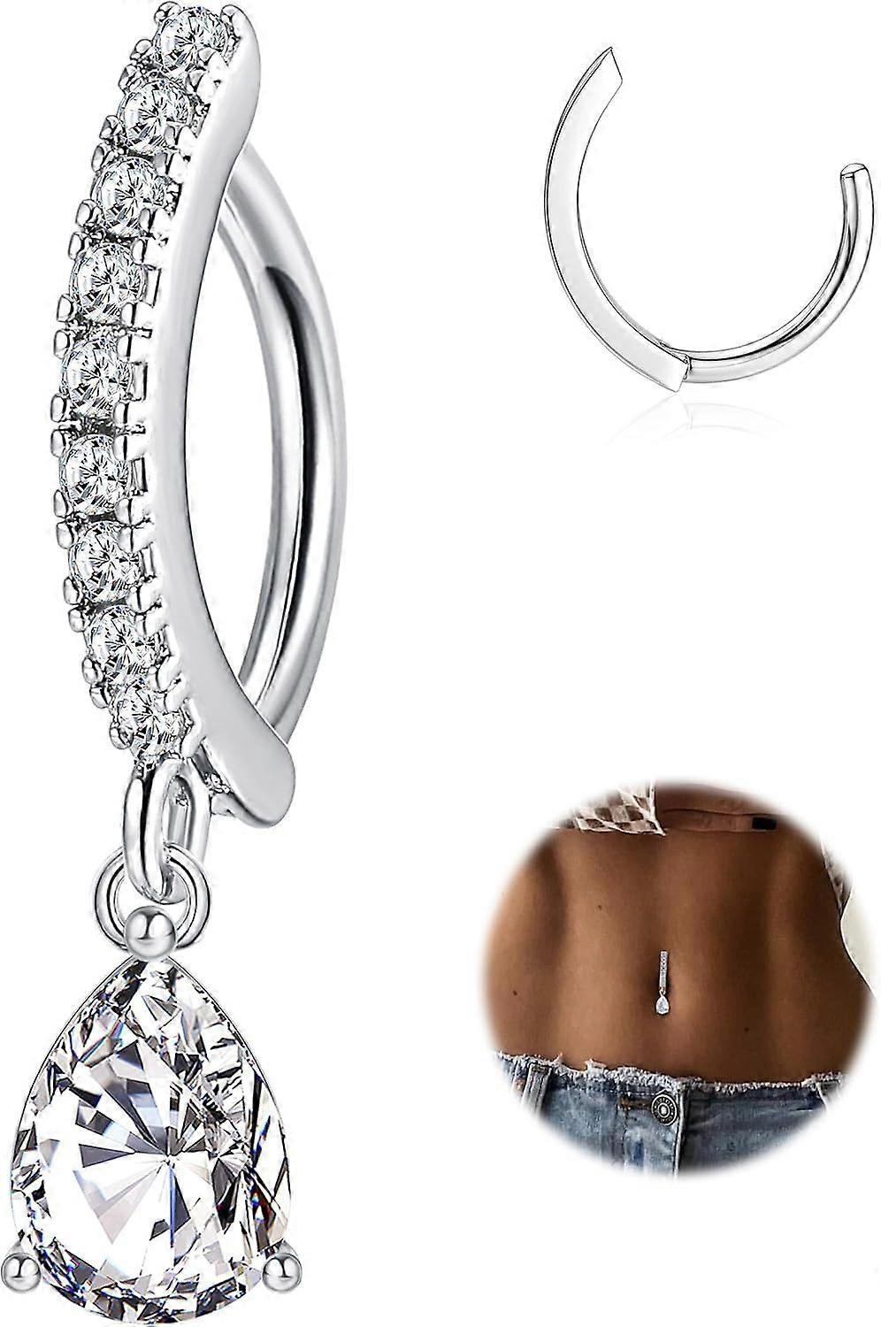 14G Clip-on Navel Ring 316L Medical Steel Pendant Navel Ring CZ Teardrop Pendant